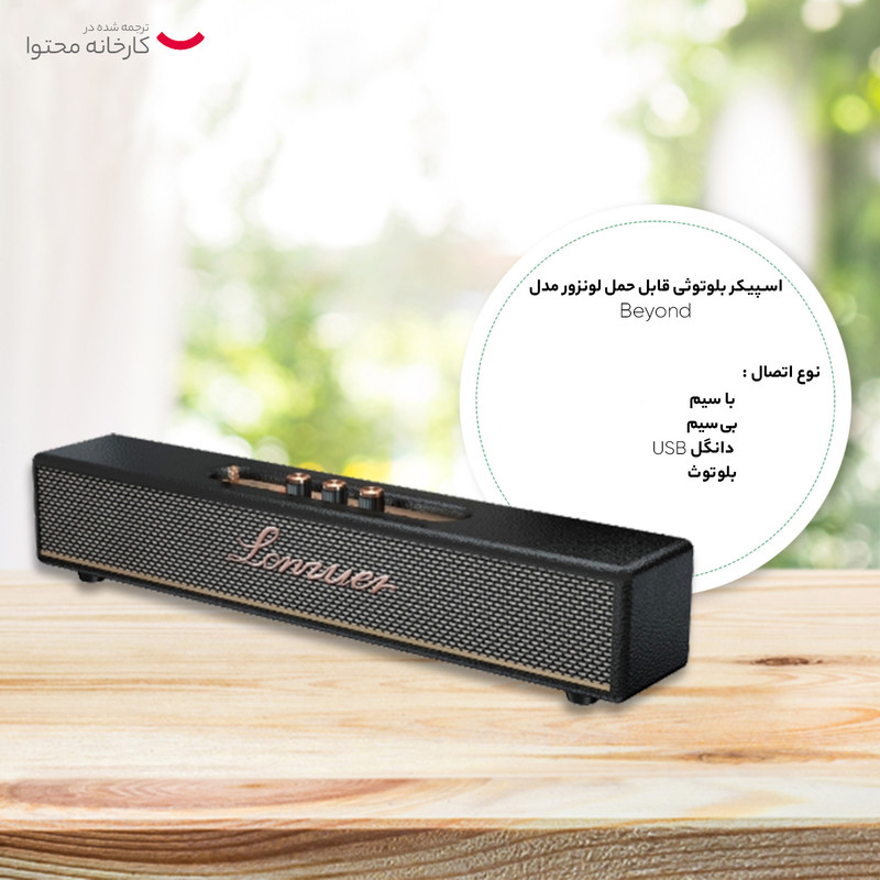 شرکت LONZUER اسپیکر ساندبار Beyond را روانه بازار اسپیکرها و ساندبارها کرده که از جنس روکش چرمی بسیار زیبا و اجزای فلزی طلایی جذاب تشکیل شده و یک ساندبار خانگی بلوتوثی بیسیم قابل حمل و قابل شارژ است. این ساندبار دارای طراحی منحصر به فرد است. قابلیت تنظیم صدا، کنترل بیس، صدای زیر را داراست. با ظاهر کوچک دارای حجم صدای بسیار زیاد و قدرت صوتی بالایی است و سطح صدای بالا و حجیم نسبت به سایز این محصول برای کسانی که اولینبار صدای این اسپیکر را گوش میکنند شگفت انگیز است این ساندبار در اندازه کوچک و تا حدی دراز ساخته شده تا به راحتی بتوانید با لوازم دیگر خانه ست کنید و از پخش موسیقی در بالاترین کیفیت لذت ببرید. این محصول از 2 ووفر 15وات و دو توئیتر 10 وات استفاده میکند که دارای بالاترین کیفیت ساخت هستند. این اسپیکر دارای صدای باکیفیتی است و به شما بیس عمیق و نرمی را ارائه میدهد. همچنین شما میتوانید با توئیتر قدرتمند موجود در این ساندبار، صداهای ریز را در واضحترین و بهترین کیفیت ممکن بشنوید. در قسمت بالای این دستگاه، کنترلرهایی تعبیه شده است که به شما امکان کنترل دستگاه را می دهد و تغییر در نوع اتصال بلوتوث یا AUX را به شما میدهند. بورد بلوتوث موجود در این دستگاه به شما امکان پخش موسیقی به صورت مستقیم از تلفن یا هر دستگاه هوشمندی را میدهد. این اسپیکر دارای بلوتوث نسخه 5.0 است که امکان اتصال بیسیم را برای شما با بالاترین کیفیت فراهم میکند. شما میتوانید با وارد کردن کابل AUX در ورودی 3.5 میلیمتری دستگاه، تلفن همراه هوشمند خود یا هر پخش کننده دیگری را به صورت باسیم به اسپیکر متصل کنید و به پخش موسیقی خود ادامه دهید.