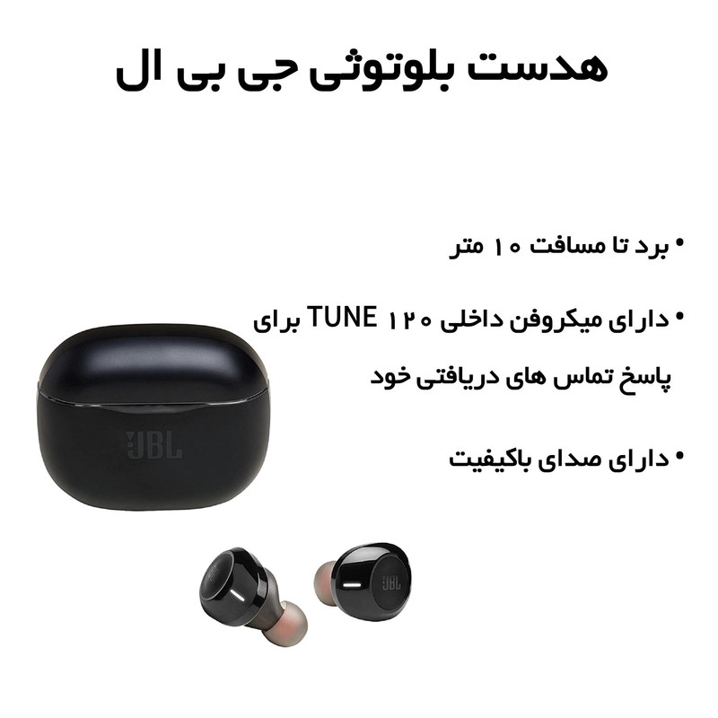 این هدفون جی بی ال از طریق بلوتوث نسخه 4.2 به گوشی شما متصل می گردد و به راحتی تا مسافت 10 متر را پشتیبانی می کند. همچنین میکروفون داخلی تعبیه شده در جی بی ال 120 Tune به شما امکان می دهد که به تماس های دریافتی خود پاسخ دهید. علاوه بر این موارد، پشتیبانی از دستیار صوتی، می تواند به اجرای دستورات شما بپردازد. صدای با کیفیت یکی از امضاهای کمپانی جی بی ال بر روی هدفون ها می باشد. هدفون JBL Tune 120 که از مشخصات فنی مانند درایور 5.8 میلی متری، حساسیت 96 دسی بل و امپدانس 14 اهمی از صدای قدرتمند و با کیفیتی بهره می برد. این هدفون انرژی خود را از طریق باتری 85 میلی امپری تامی می کند که قادر به پخش موسیقی تا 4 ساعت خواهد بود. همچنین کیس شارژ این محصول می تواند تا 14 ساعت برای شما شارژدهی داشته باشد.